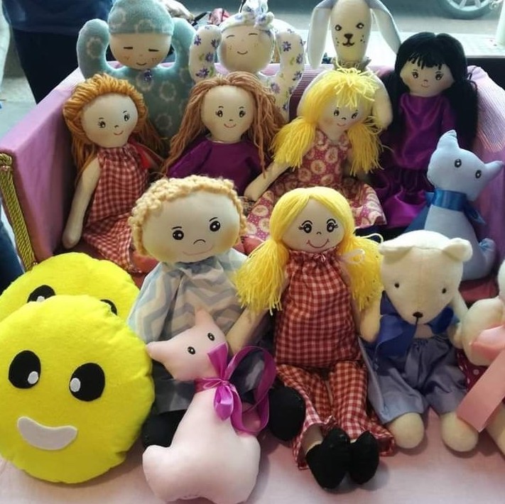 Artesanato variado, bonecas em tecidos, artigos em malha.