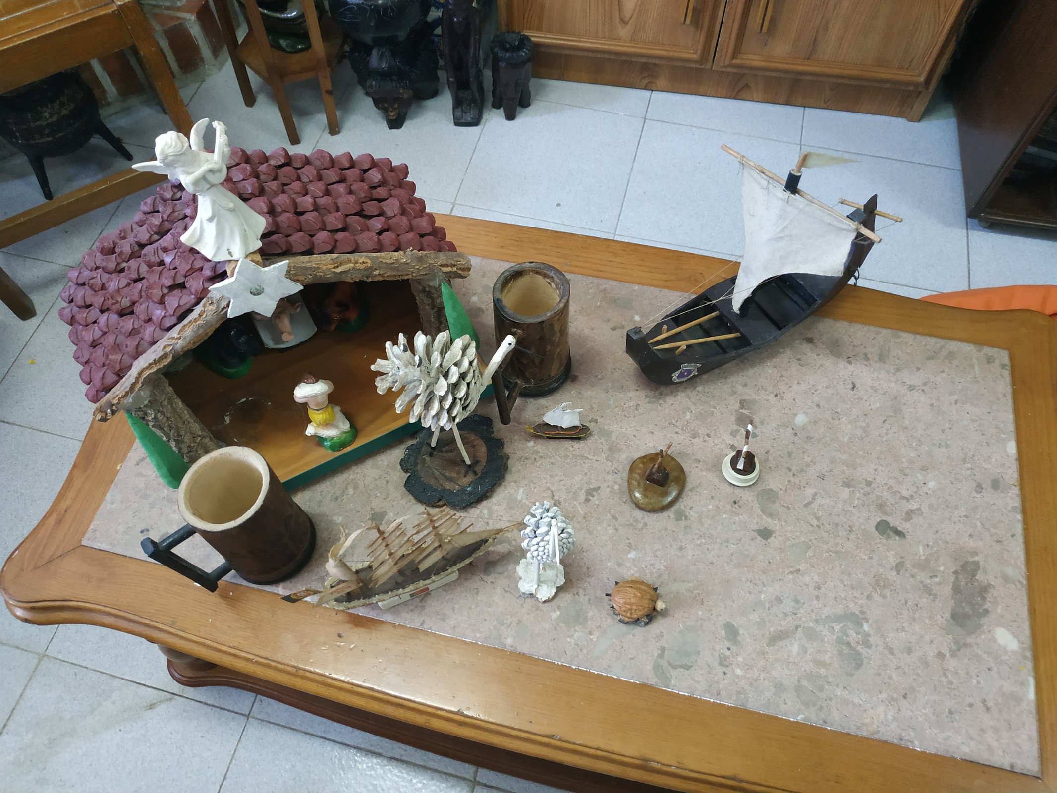 Trabalhos com materiais recicláveis: presépios, barquinhos, entre outras peças.