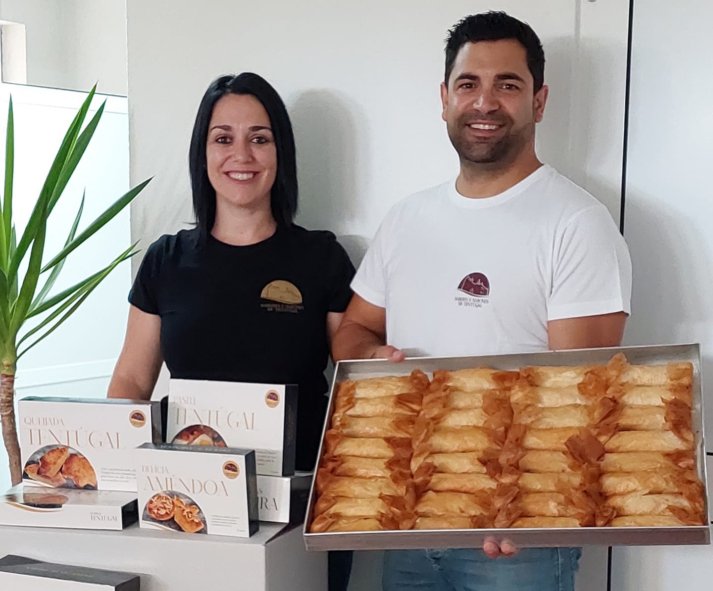 Comercializamos os quatro doces típicos de Tentúgal: pastel de Tentúgal; queijadas de Tentúgal; barrigas de freira; e delícias de amêndoa.