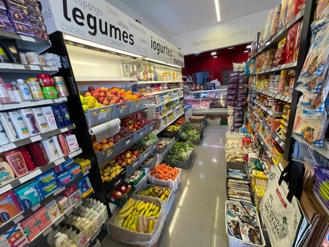 Mercearia, talho com enchidos de fabrico tradicional e pão quente.