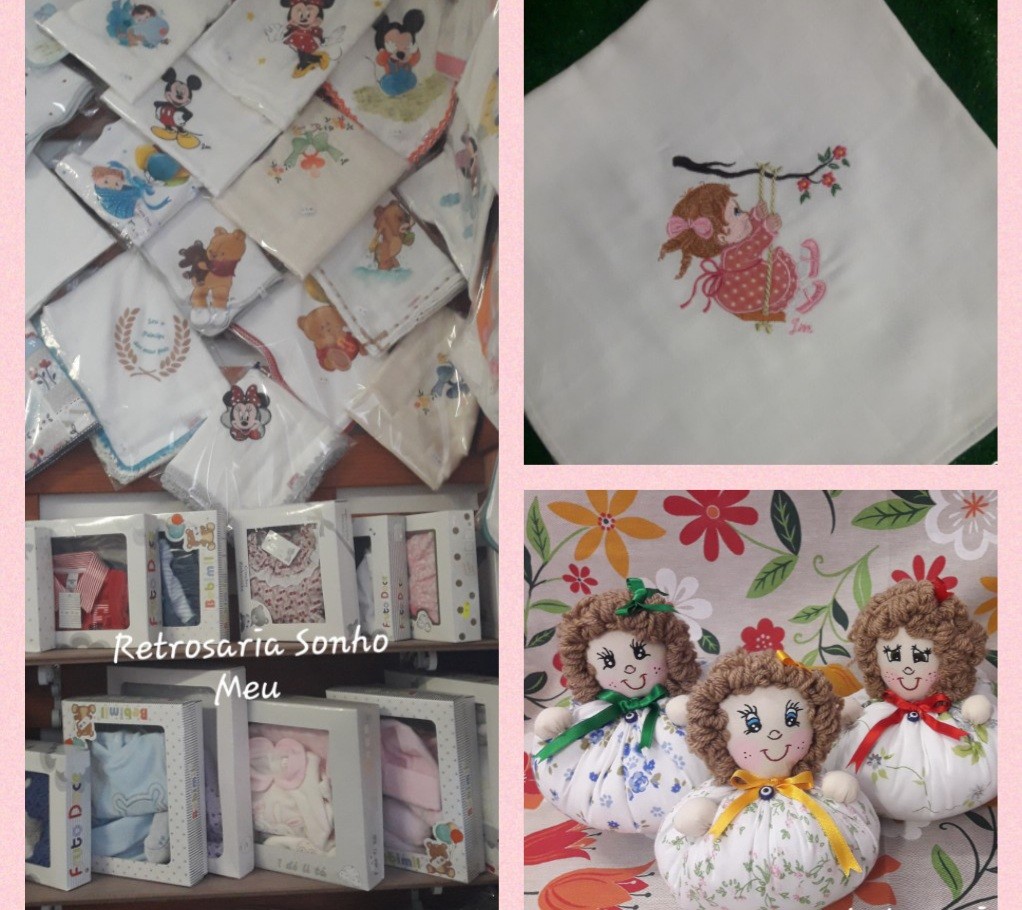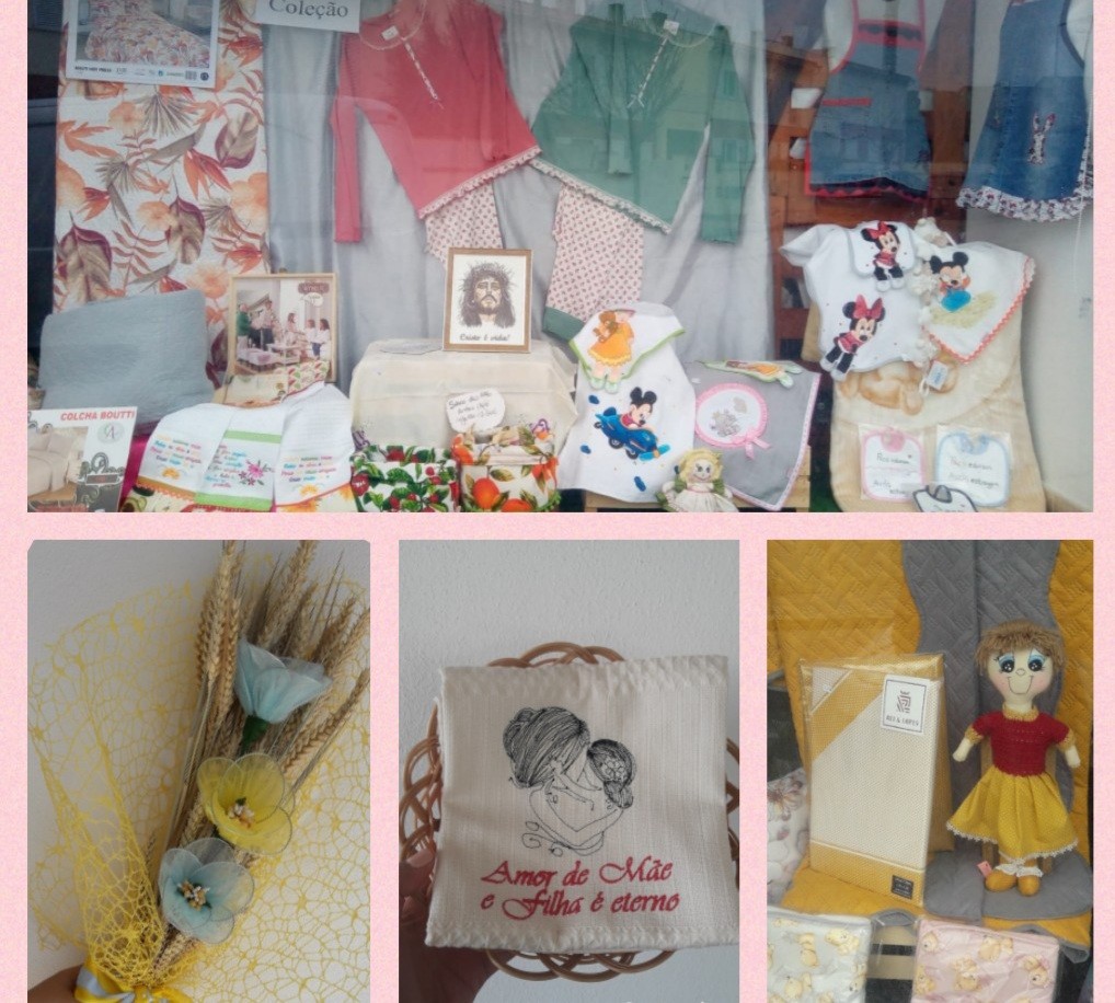 Artesanato e venda de fatos para bebé, fraldas, tecidos, fitas ao metro, linhas de coser, linhas de bordar, linhas de croché, panos e toalhas, entre outros artigos. Fazemos ainda arranjos de costura, pintamos em tecido e bordamos à máquina e à mão.