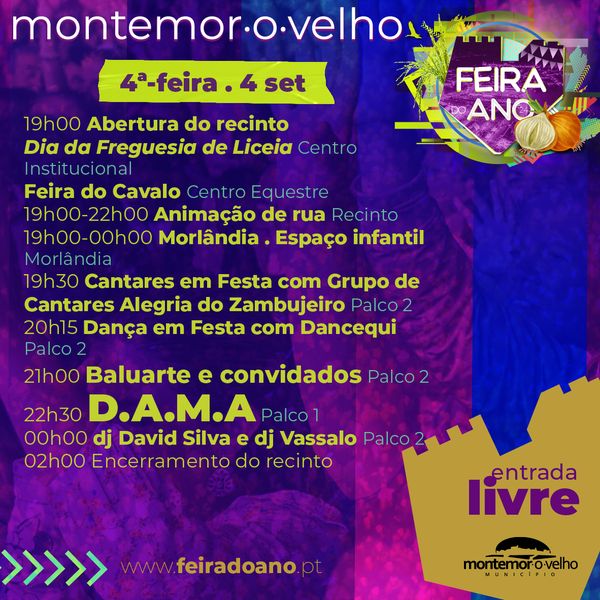 De 31 de agosto a 8 de setembro, em Montemor-o-Velho, contamos com a sua visita.