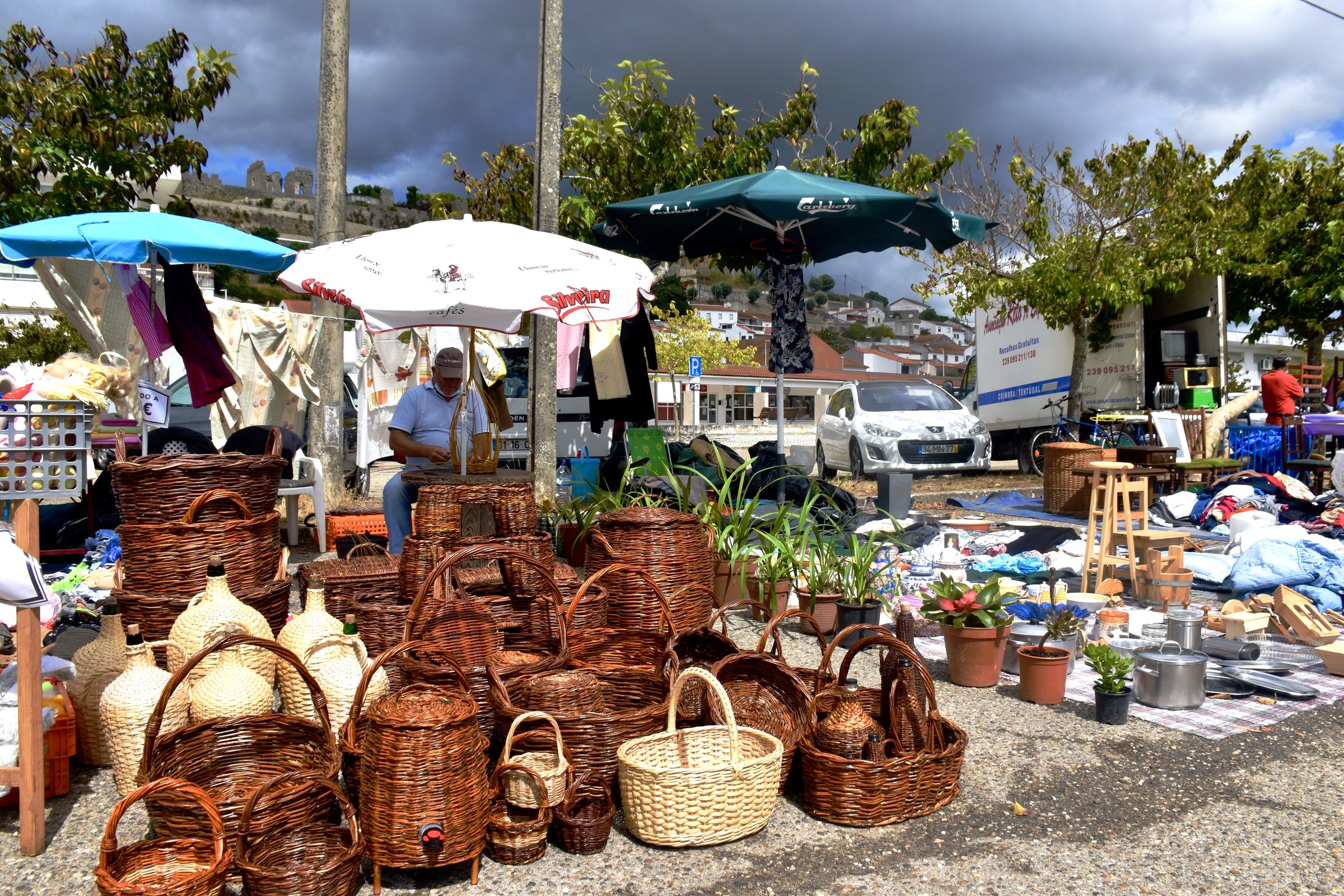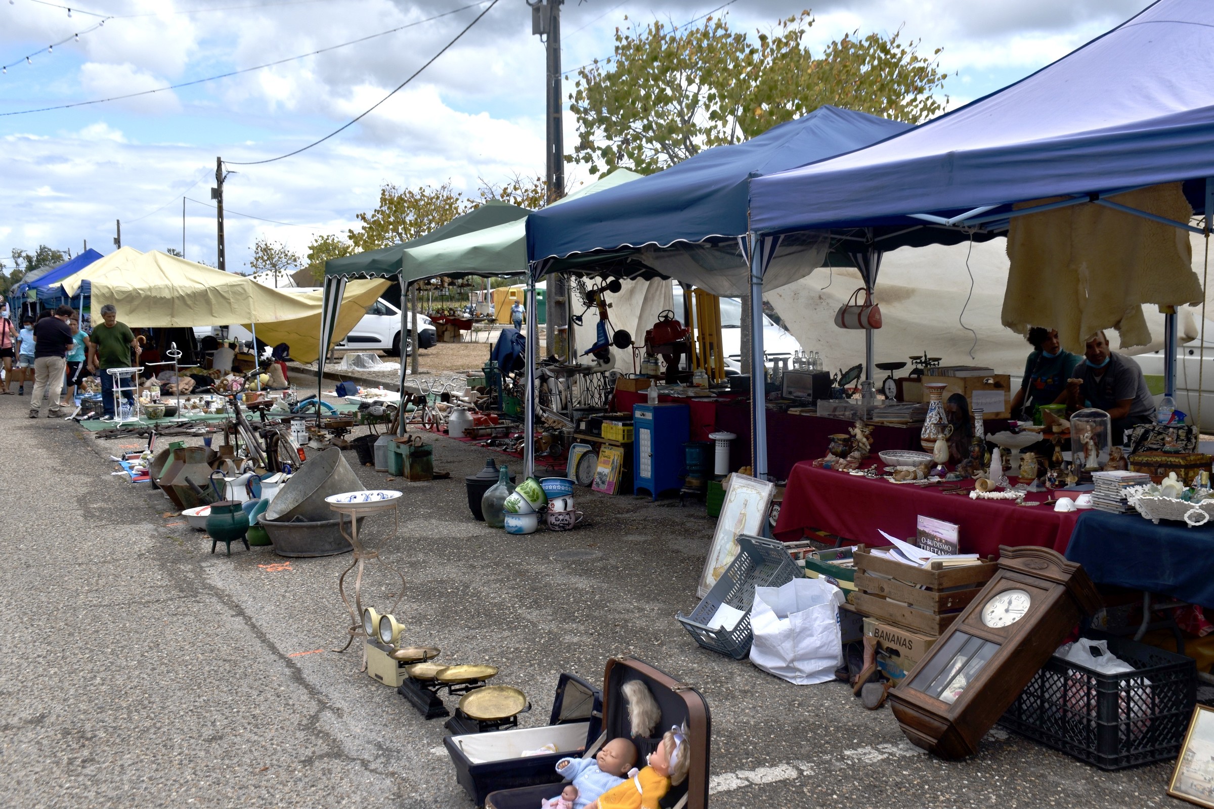 A par das antiguidades, velharias ou roupa em 2ª mão, o espaço comercial a céu aberto evoca, igualmente, as vivências agrícolas do concelho e da região.